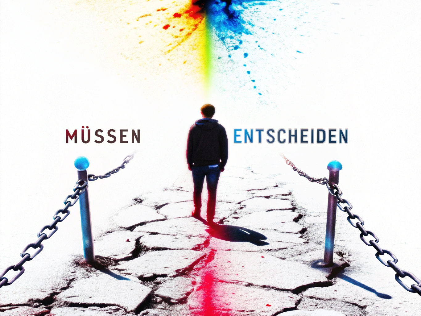 Wenn „müssen“ durch „entscheiden“ ersetzt wird, öffnet sich eine Tür zu einer tieferen Reflexion. Sofort steht die Frage im Raum: „Warum entscheide ich mich dafür?“, „Möchte ich mich denn dafür entscheiden?“ oder „Wie wird die Welt denn sein, wenn ich mich dafür/dagegen entscheide?“